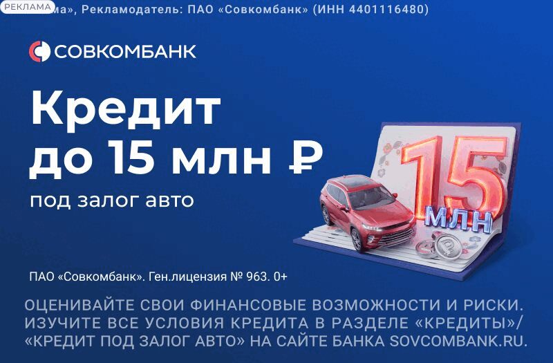 Кредит под залог Авто: 14,9%. ПСК 14,883% — 14,901%.