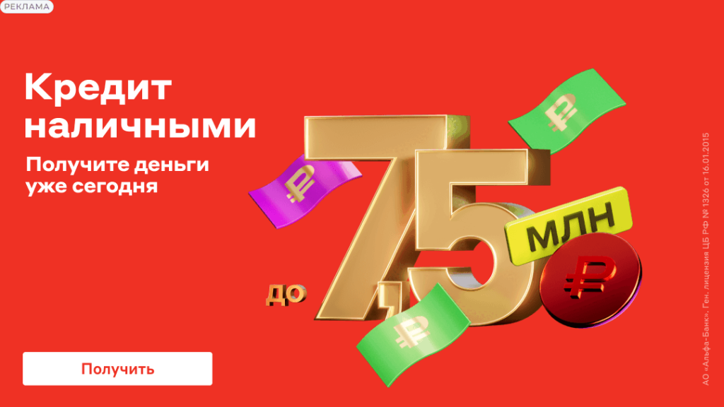 — Придите в ближайшее отделение Альфа-Банка, предъявите пакет документов и получите деньги в тот же день. Для оформления займа нужно представить паспорт, справку о доходах и еще 1–2 документа на усмотрение заемщика.